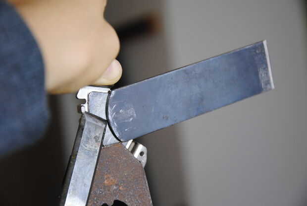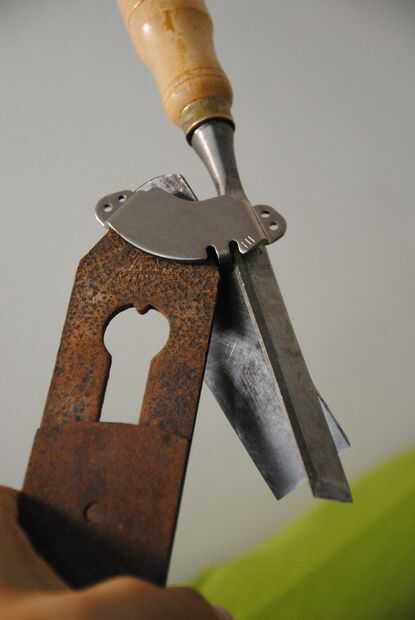 Porque esta guía afilar con piedra tiene hojas con un imán, que tenía que asegurarse de que todos los de mi mano-plano y cinceles Haz atraídos por un imán. Usé un imán de disco duro para mostrar de la imagen.