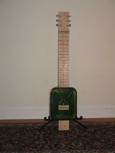 Lapful de chatarra-una guitarra de acero del regazo hecha de materiales reciclados