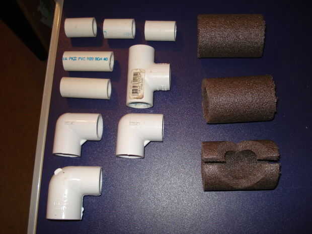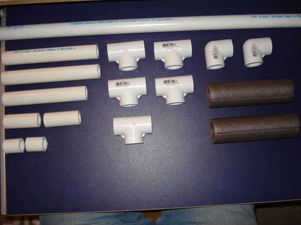 Necesitará cortar el PVC y la espuma antes de que se puede montar esta cosa. Una sierra para metales trabaja encantos para cortar PVC y espuma. Aquí son las longitudes que necesitarás: