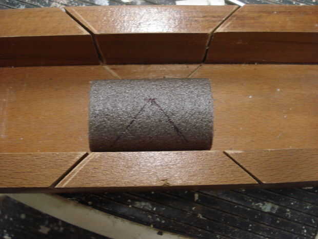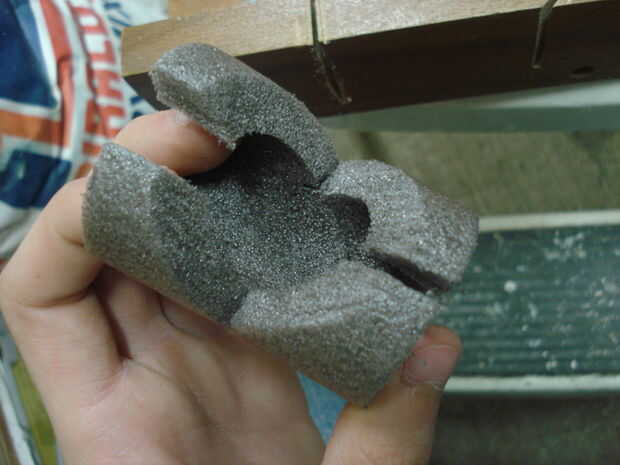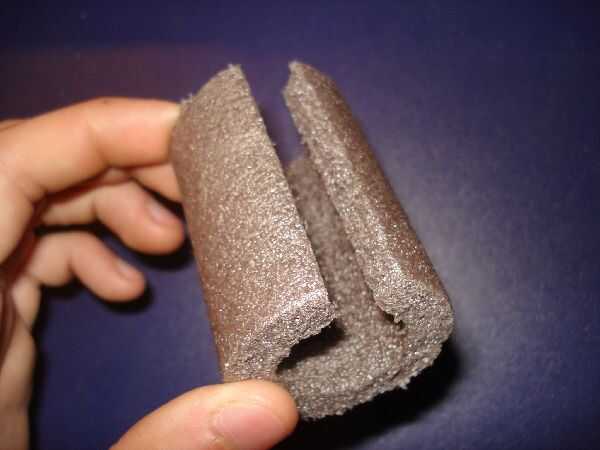 Ahora necesitará modificar las dos restantes 2.5" pedazos de espuma de modo que encajan perfectamente en el tubo de PVC de 1/2". Dibujar una línea 1/2" de la ranura en la espuma y corte a lo largo de eso. Asegúrese de cortar siguiendo la forma del círculo, de manera que los dos bordes se acoplarán entre sí.