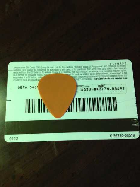 En primer lugar un pick de guitarra usted tiene y colocarlo en la tarjeta de regalo (no tienes que usar una púa de guitarra sólo hará más fácil). Después de colocar la guitarra toma en la salida de la tarjeta de regalo delineando con un rotulador.