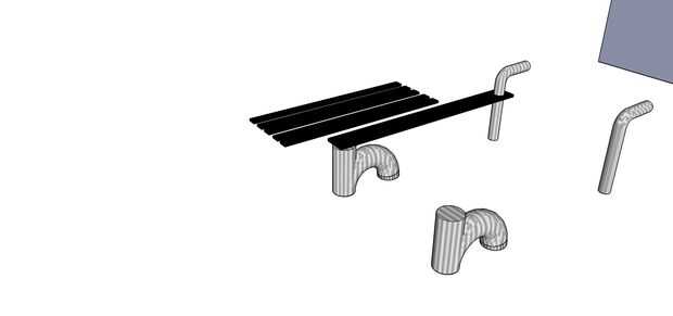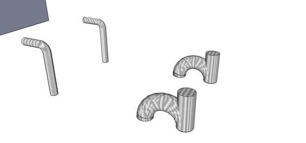 Este subpaso requiere el vaivén, círculo, arco y me siguen herramienta. Lo primero que hice fue hit 'c' de la herramienta de círculo. Una vez que había creado el círculo tiró de él hacia arriba un poco. Luego dibujé un arco que se conectan en tangente al círculo. Lamentablemente no existe ninguna combinación de teclas para el seguimiento me herramienta (a partir de Sketchup 13) así que tuve que hacer clic en 'herramientas' en la parte superior de la pantalla y siga las me de allí. Con el seguimiento de mi herramienta en la mano izquierda hacer clic en y llevó a cabo, la parte superior del cilindro y había arrastrado a lo largo del arco. Ser paciente con el seguimiento me herramienta, es bastante meticuloso y fáciles de conseguir molestado por. Y para facilitar las cosas para el resto de la construcción seleccionado toda la estructura, (use la barra espaciadora) y pulsa 'g' para el grupo. Esto mantiene todo lo de agrupar. A continuación, copiar y pegar con CTRL C y CTRL V.