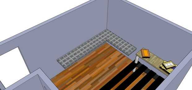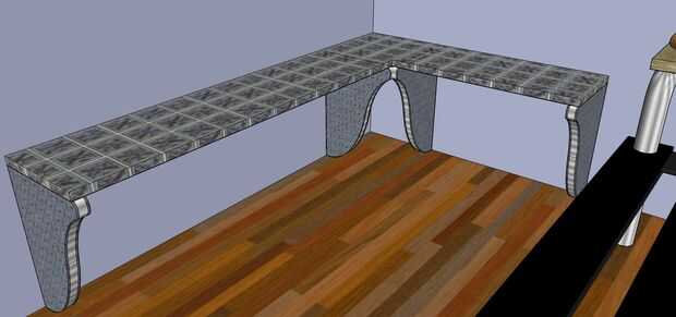 Usé un prisma rectangular de color como el vidrio para crear un contador. Como un solo bloque la coloqué en la esquina de mi habitación. Entonces hice un rectángulo para marcar la zona que quería extender fuera del lado del contador. Entonces empujó hacia fuera a la distancia que quería.