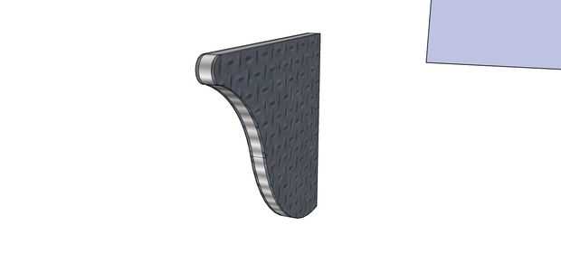 Utilicé una serie de arcos y líneas para crear el gráfico 2-d que quería usar como el soporte. Luego lo copió para su uso posterior. Entonces empujé la rodillera original hacia fuera al grueso que quería ser. Entonces tomé las secciones previamente la había copiado y movía en el modelo de la llave por lo que pude color cada parte de manera diferente.