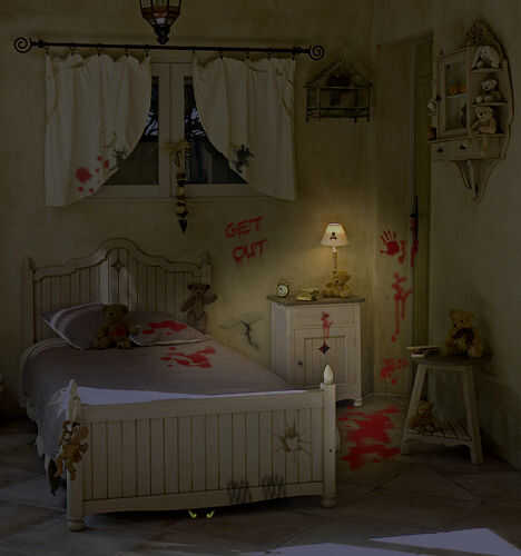 para Halloween el año pasado, que quería hacer una casa embrujada para nuestra fiesta anual. Era mi trabajo para crear una casa embrujada pequeño para los clientes a recorrer para llegar a la fiesta. Tuvo que estar en el pasillo o en mi habitación (t