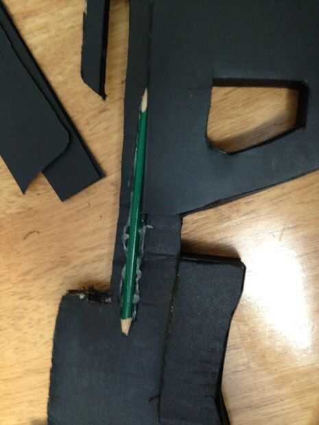 En este punto, me encontré con el rifle para ser endebles, así que añadí un lápiz. Tenga en cuenta que tenemos que ajustar la capa superior un poco para esto, pero no biggie. Tras esto, añadir los trozos que todavía no ha añadido.