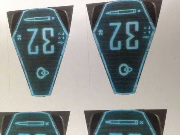 Usando una impresora, imprimir las 4 capas de un contador de munición. Que tenga que hacer esto varias veces hasta obtener el tamaño correcto para su rifle. Corte diferentes tamaños así que sólo tuve que imprimir una vez. Una vez lo ha hecho que, en una de las imágenes, recortar los números. Esto hará más fácil para que la luz brille a través de los números y dar ese efecto de LED. La capa como se muestra en la imagen, intercalando dos imágenes normales sobre la imagen con el corte número salidas. Después de eso, encontrar algunos claros de plástico (mina era de una carpeta) para ir la muy exterior. Una vez hecho esto, pega todo juntos, pero en las esquinas inferiores para que no obstruya las luces. A continuación, encontrar una mini linterna. Sí, estamos haciendo una luz arriba contador de munición. ¿Wow, las características a seguir viniendo, no?