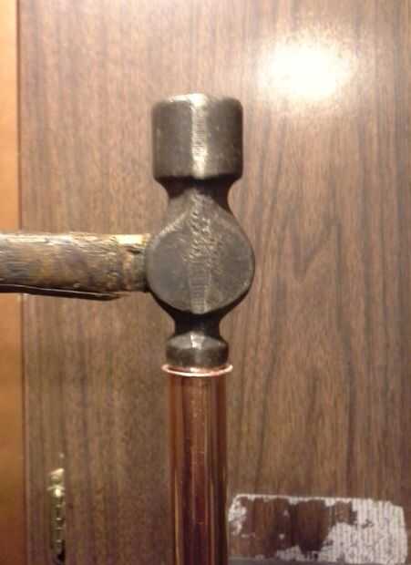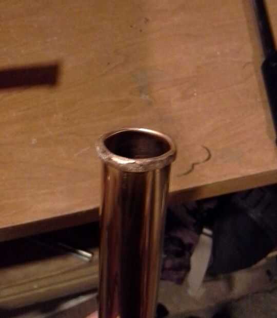 Después de que los bordes se ensancharon a usé el martillo para doblar los bordes hacia el tubo. Esto creó un labio en el extremo de la tubería.