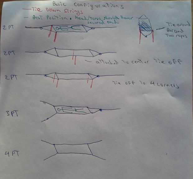 El diagrama muestra varias formas de configurar la hamaca.