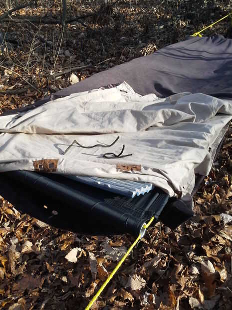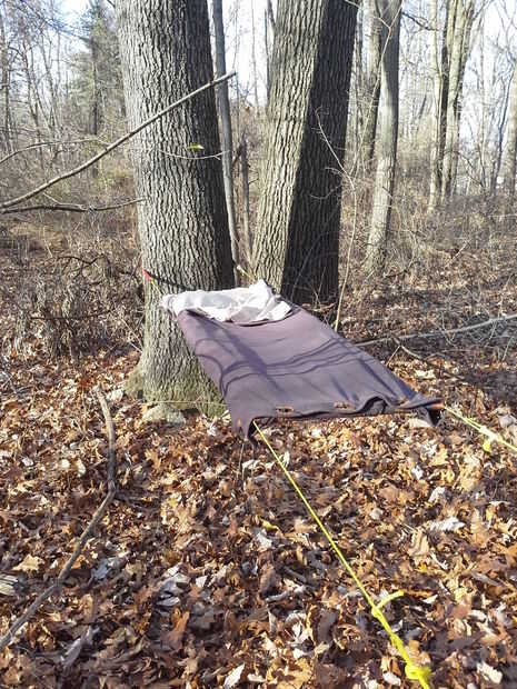 La hamaca puede deslizarse en el equipo para dormir. Hay puntos de enganche en la hoja, lana y edredón que se alinean con los puntos de sujeción de la hamaca. Esto da la opción de vincular a todo el equipo.