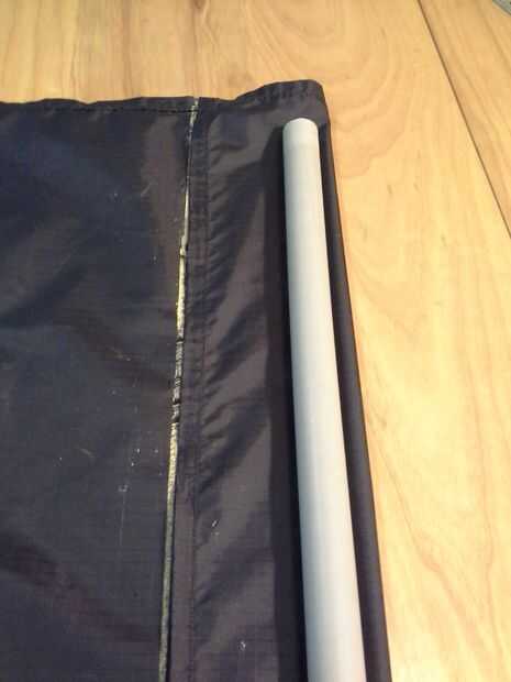 Cada extremo de la hamaca deberá ser doblado sobre el tubo y unir. Si tienes una longitud deseada para su hamaca se deberá medir la longitud de la hamaca y restar la longitud deseada. Por ejemplo.