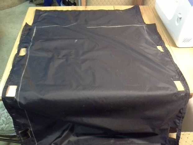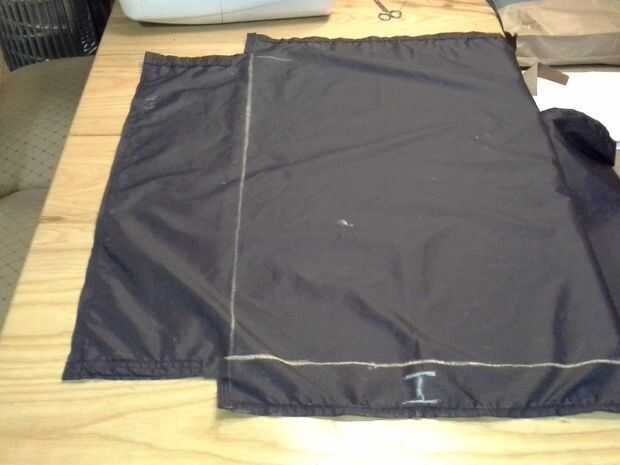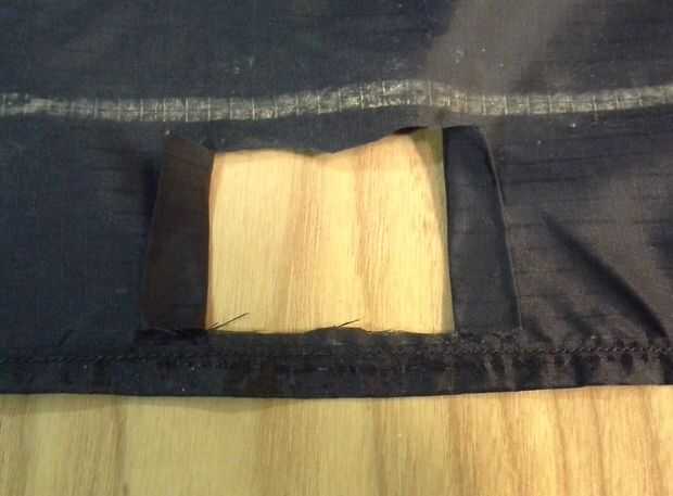Marque un 'I' en cada uno de los lugares que haya determinado hacer un agujero. Ver la primera foto. El ancho de los agujeros que hice fueron 2 pulgadas. No corte demasiado cerca al borde de la tela. La distancia desde el borde de la tela debe ser mínimamente más grande que el tamaño de la superposición que planeado.