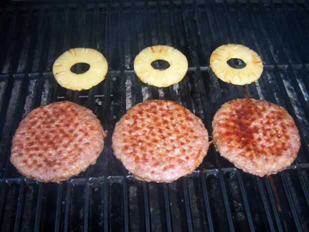 Cuando estás en este momento Voltee los anillos de piña, antes de que le da la vuelta las hamburguesas. De esta forma que no tendrás que trabajar a través de cualquier llama flare ups.