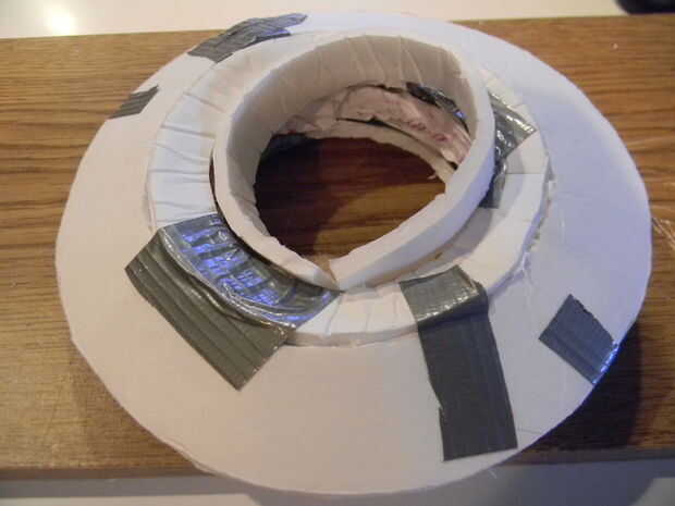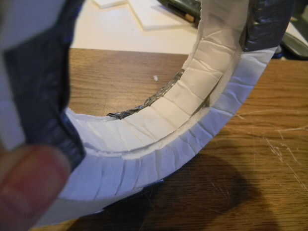 Me lo hiciste como yo, conecte los aros interiores con un trozo de cartón pluma para ajustar el boquete. Añadir periódico más medida que avanza.