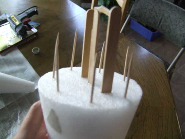 En primer lugar, os adjunto los dos conos usando palillos y palitos. He añadido la cinta alrededor del exterior entre los dos para celebrar juntos. Además, puse una pequeña cápsula de metal en la parte superior.