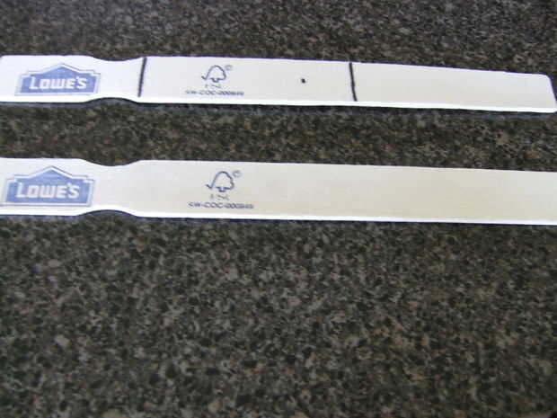 Luego tome los palillos de la pintura. Cortarlas en cuatro trozos de longitud eqaul y los cuatro al lado del pegamento. así que ahora usted tiene una masa de madera. Después de, para la decoración, poner cartón pequeñas tiras de 1/4" ancho arriba y abajo de la manija. Lo siento no hay foto. Si dudas pregunten y voy a intentar explicar más.