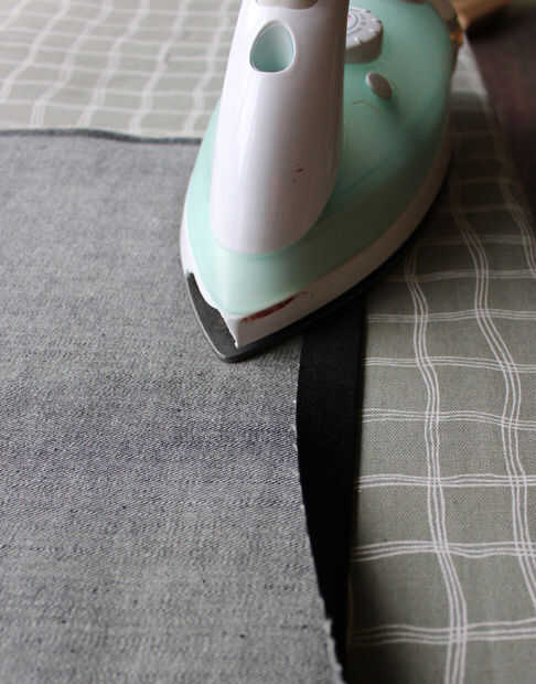 Pliegue sobre el margen de costura de 1/2" en la parte superior e inferior y plancha el doblez.