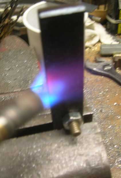 La temperatura exacta y el color varía con cada diferente tipo de acero, por lo que una vez que aprendas lo que es mejor para un tipo de acero pueden reproducir los resultados que desea. Es un ejercicio de aprendizaje. Si sale demasiado fuerte, un poco más de calentamiento y revise de nuevo, que esto es seguro ya que no lo recaliente y pierde el borde cualidades de explotación. Si sale demasiado suave, puede calentar al rojo brillante y reendurezca o inténtelo de nuevo.