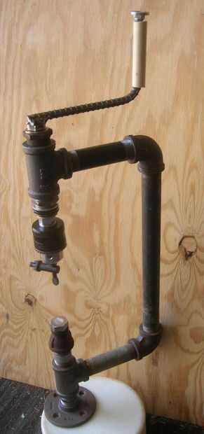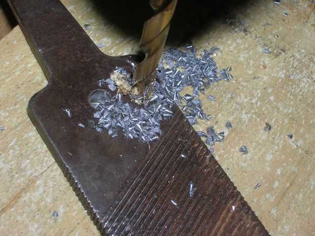Es una prensa del taladro manual de tuberías de hierro. Puede ser bastante lento, pero pueden perforar los agujeros en materiales duros con brocas helicoidales estándar.