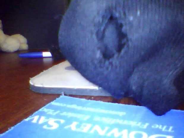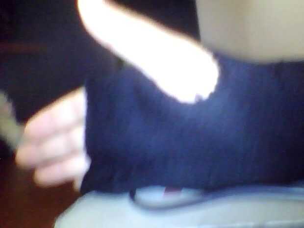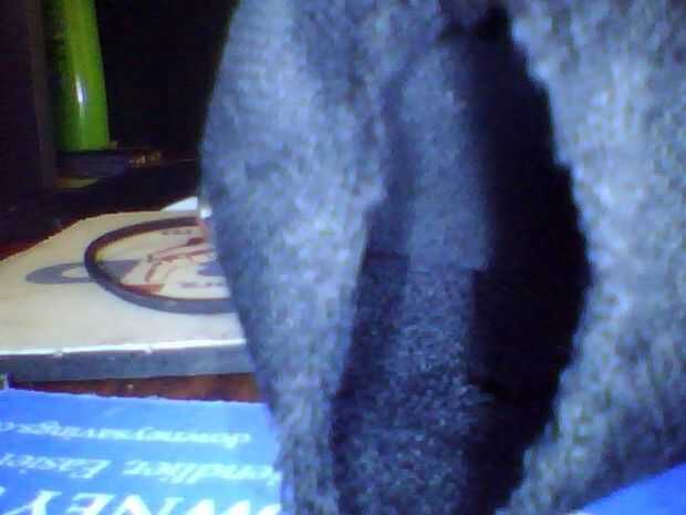 Con unas tijeras, cortar el calcetín para que tenga un agujero ligeramente bajo la holes.fold de dedo superior hasta el calcetín extra para formar un bolsillo