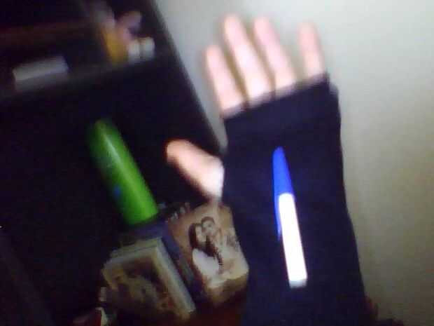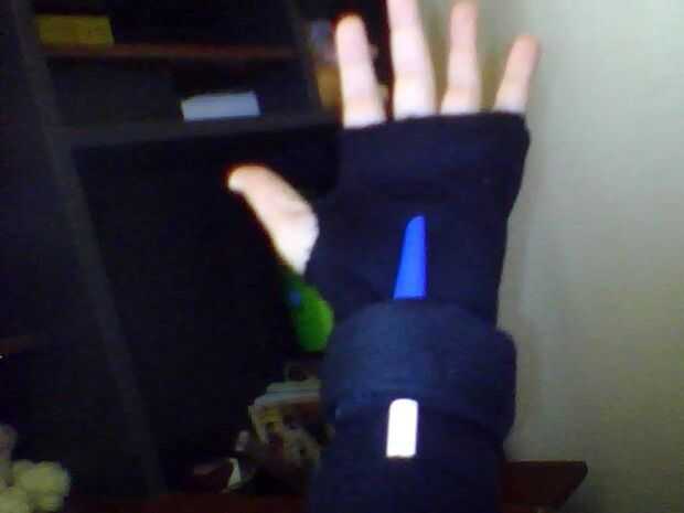 Poner el calcetín/guante en la mano... Deslice la hoja de la pluma de este PocketHas anteriores y asegúrelo con la cinta de goma (o lo ha utilizado).