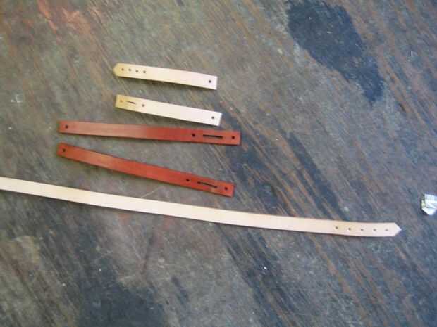 Consejo: Para asegurarse de que las correas de mi fueron lo suficientemente largos Unido la hebilla en el extremo primero y luego cortar el otro lado a la longitud correcta. De esta forma que no tengo que adivinar en cuánto sobrante que necesitaba para conectar la hebilla. Cuando os adjunto la hebilla utilicé tornillos de Chicago para que pudiera tomar la hebilla detrás de cuando llegó el momento de mancharlo.