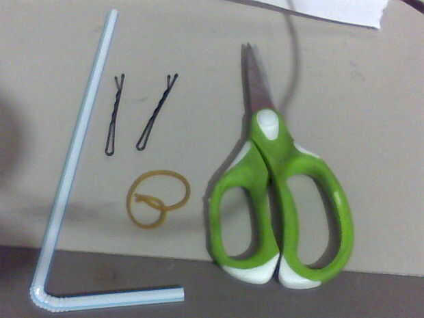 A Bobby Pin (por supuesto), A paja Bendy (opcional), tijeras y una goma