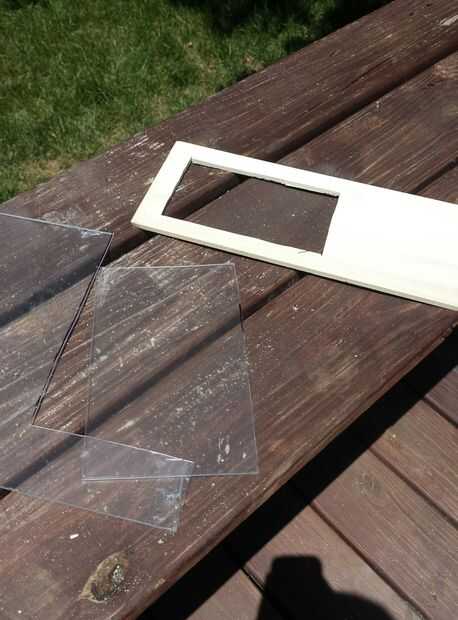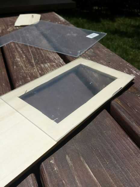Corte un pedazo de 9x5.5 de plástico transparente y fije a la pieza frontal. Poner un peso en ella o la abrazadera y asegúrese de que los bordes queden al ras.