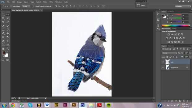 1) para empezar a añadir color a las formas de polígono, crear una nueva capa en Photoshop y asígnele Color. Ampliar sus rutas y utilice la herramienta Selección (flecha negra) para seleccionar un solo polígono. Cuando se selecciona el polígono deseado, haga clic en él y desplácese hacia abajo para hacer la selección.