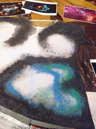 este proyecto crea la camisa para un traje de Halloween de Zombie Nerd. El traje es como el Zombie se ha quedado estancada con un montón de lápices.Fuentes:Las fuentes básicas que necesita son tijeras de tela, tela blanca, puntada líquida (pegamento