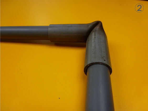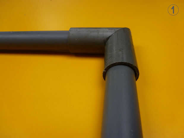 1. cortar dos tubos con un diámetro más grande bajo un ángulo de 45° y pegarlos