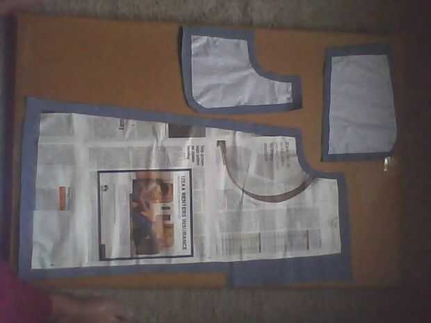 Corte hacia fuera el patrón de papel y alfileres en la tela del dril de algodón, o cualquier otra tela de elección, como pana floral. Con marcador de tiza o tela, marca un 3/4" de costura para cortar por las costuras y use alfileres como guía para trazar las costuras en la parte posterior de la tela, luego recortar.