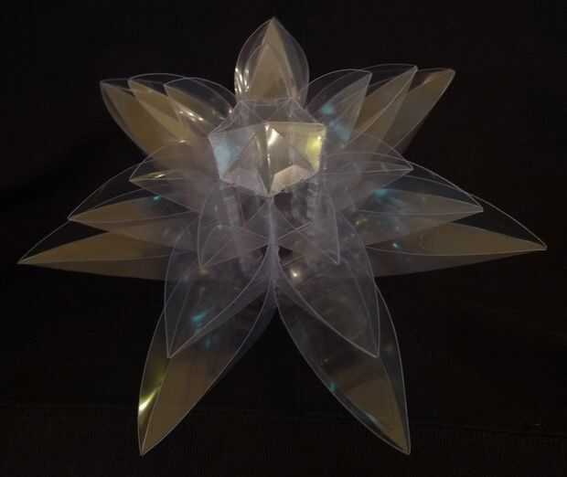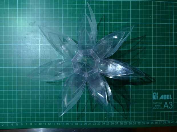 El material de la lámpara en la foto de abajo es simple hoja de plástico transparente de uso como cubierta protectora para atar documentos en copistería. Yo tengo la mía para 25P por hoja A3, barato como patatas fritas!