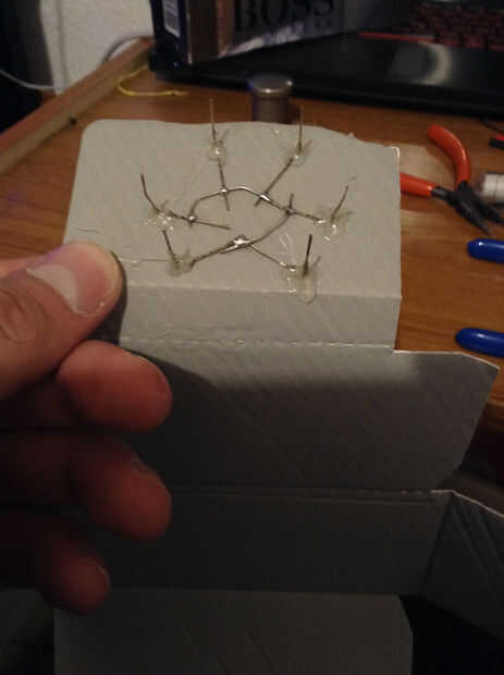 Pero una idea goos es pegar los pernos en el pegamento de base, no demasiado, sólo lo necesario para mantener los leds en su lugar.