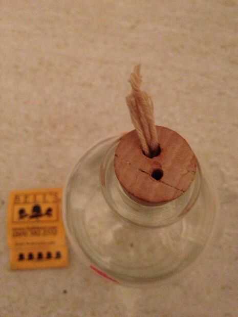 Pase la mecha por el más grande de los dos orificios en su tapa de corcho o jar (esto puede tardar algunas maniobras). He utilizado un bucle de alambre y aguja de alicates.