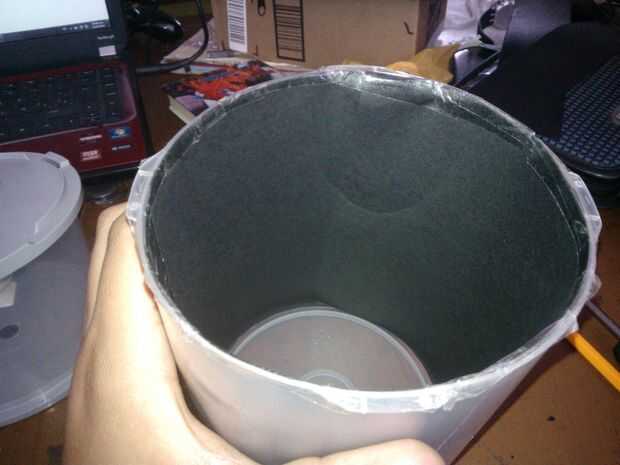 Vamos a pegar algunos negro por lo que es el tamaño del eje cd, además de para ocultar la parte superior cortar un círculo de modo que cubre la parte superior