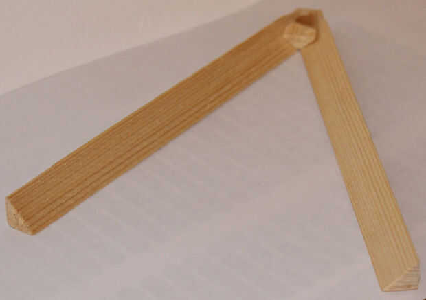 Mientras éste se está secando puede hacer que la pieza media. Usted necesita listones para esto y sólo tienes que cortar una pieza de cada uno en el punto deseado de los listones, sólo tienes que cortar hasta que estás en el centro de la madera para crear una buena conexión. Esto determinará qué tan grande es la lámpara. Tras cortarlos derecha sólo tienes que pegarlos juntos.