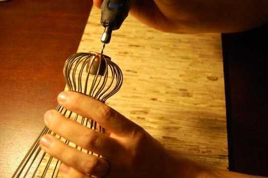 Si usa un kit de la lámpara con el interruptor en la parte inferior, tomar el sostenedor de vela y Voltéela boca abajo. Taladrar la parte inferior utilizando la Dremel, el agujero sólo tiene que ser aproximadamente 1/4 pulgada para dejar espacio para el interruptor en la parte inferior del sostenedor de la lámpara. Si el interruptor está en el lado, omitir este paso.