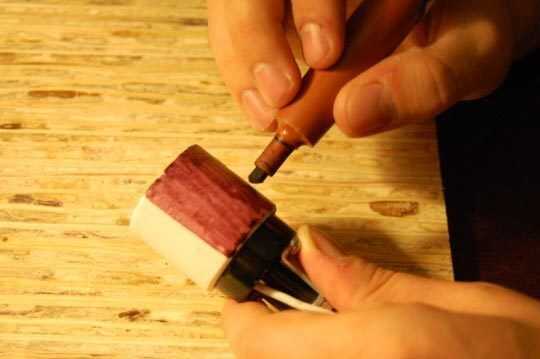 Usando el marcador, color la lámpara cerámica empalmes soporte y cable para que mezcla con el metal.