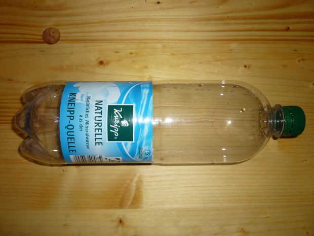 Buscas una botella que tiene una forma cilíndrica con una tapa redonda. Si te encuentras en Alemania, puede buscar la marca "Kneipp".
