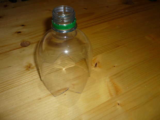 La parte superior de la botella es la parte más fuerte de la botella y le da su estabilidad. Usted puede utilizar un cúter para la parte superior, pero una herramienta giratoria aka. Dremel es probablemente más adecuado para el trabajo.