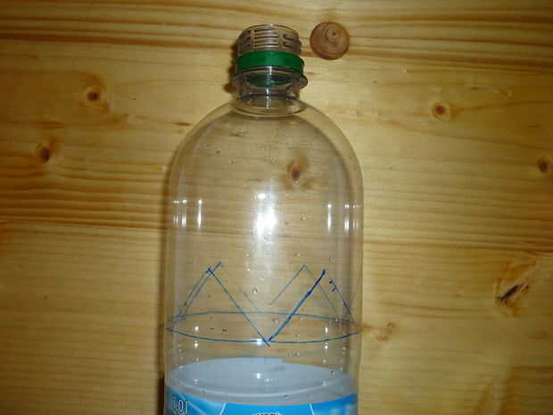 Para obtener una forma uniforme, es recomendable crear una plantilla en papel y utilizarlo para marcar las líneas de corte en las botellas.