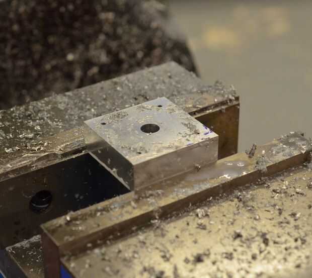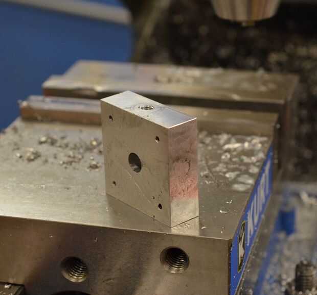 El primer paso es a la Plaza de su bloque. Las dimensiones no son demasiado críticas como es alrededor 2x2x0.5 ". Necesita suficiente área para la placa de LED para montar en y bastante grueso para el tornillo de montaje que vienen en el lado.