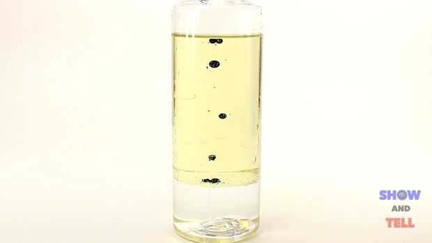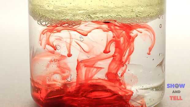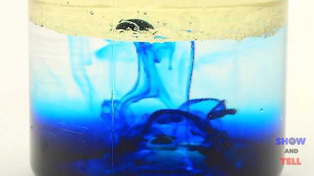 La gotitas de colorante caerá a través del aceite y descansar encima del agua. Unos segundos después, estallan haciendo un espectáculo fresco como la mezcla de colores con el agua.