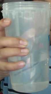 hacer una lámpara de lava que le divierten mucho durante unos 5 minutosIngredientes:Recipiente transparente altoAguaAceiteHarinaMi agua está un poco turbia porque he utilizado dos veces.Paso 1: Agregar el agua + aceite Bien, es así de fácil...Sólo Vi