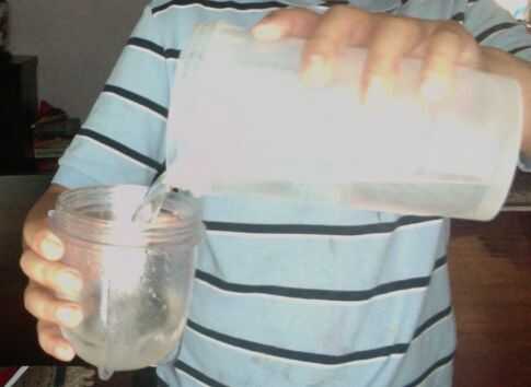 Verter el agua en la taza.