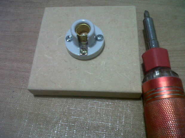 al centro la portalámpara que mido donde estaba el centro y entonces negrita el sostenedor de la lámpara a la madera con un tornillos de 1 pulgada