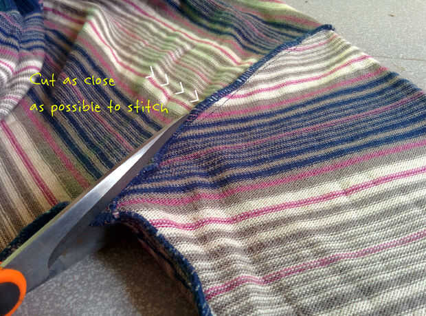 - Agarra la tijera y cortar una manga de su suéter lo más cerca posible de la puntada.