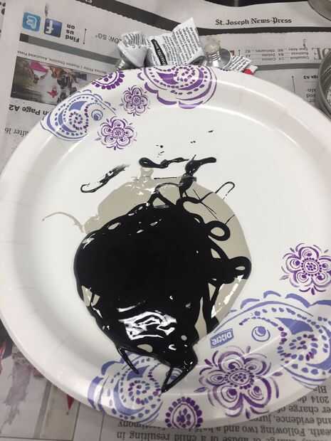 Cuando los tubos están sobre la combinación de placa de papel juntos hasta obtener un color gris con el palillo de la cadena.