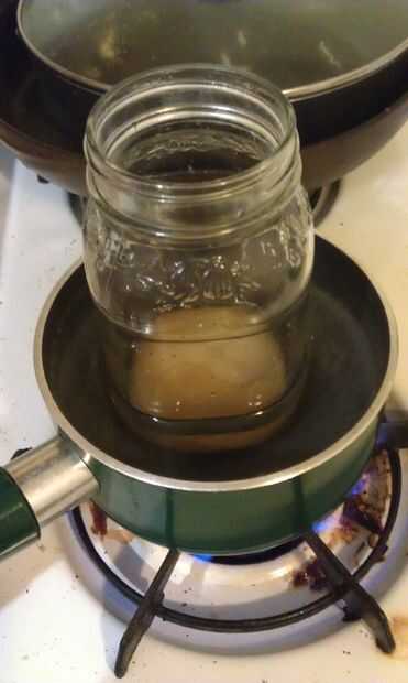 Llene una pequeña olla con agua y coloca el tarro de grasa en el agua. Encender la calefacción y ver la grasa derrite.